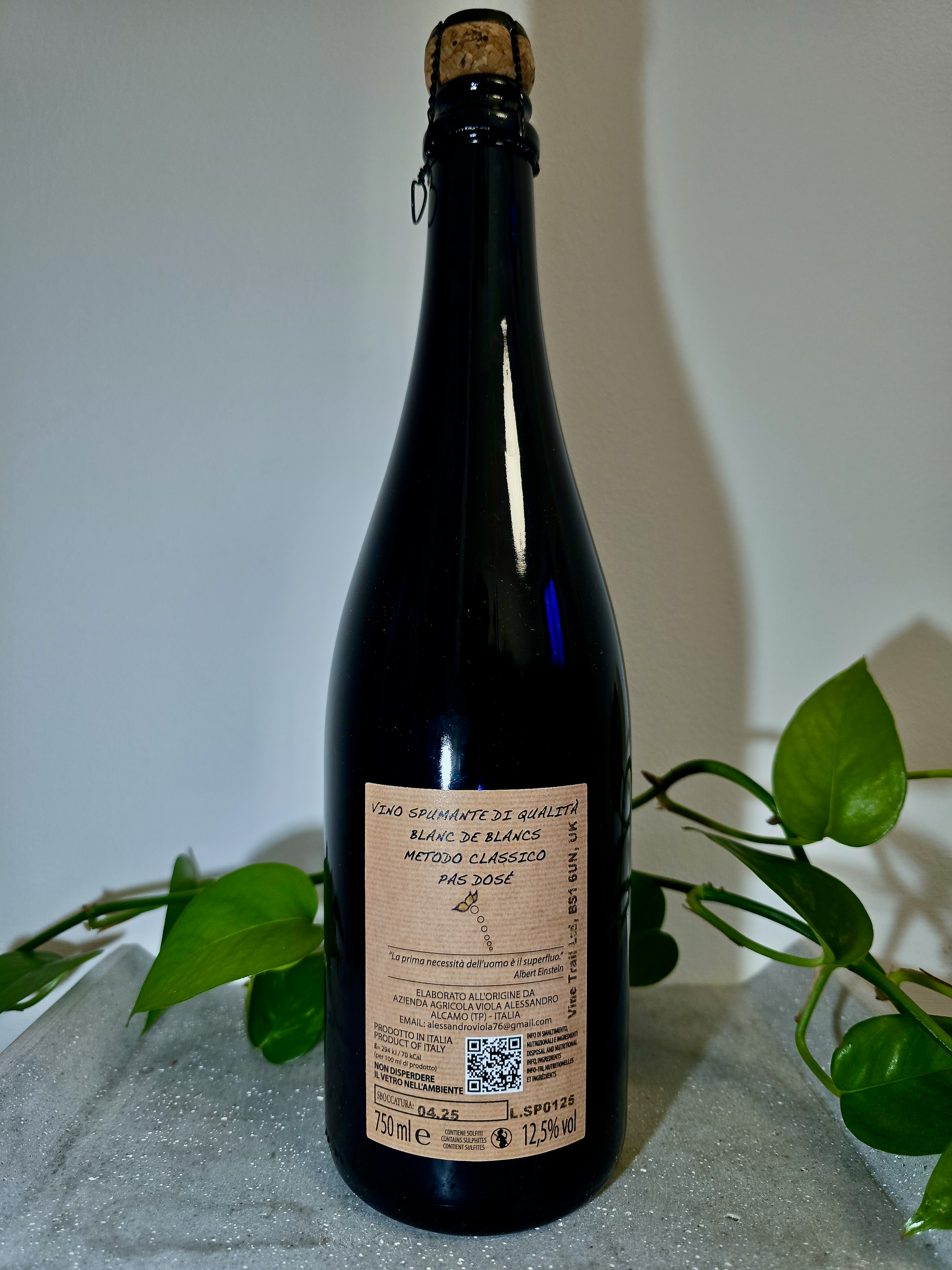 This Blanc de Blancs is one of Sicily's most refined traditional-method sparkling wines, crafted entirely from 100% Catarratto. The grapes are grown on the limestone-rich soils of the Fastuchera district near Alcamo, which imparts a distinct mineral backbone to the fruit. Following Alessandro’s minimal-intervention philosophy, the wine undergoes its primary fermentation with indigenous yeasts before a second fermentation in the bottle. It is aged on its lees for at least 20 months before being disgorged as a Pas Dosé, meaning no sugar is added in the final dosage, allowing the pure terroir and the character of the native Catarratto to shine through.