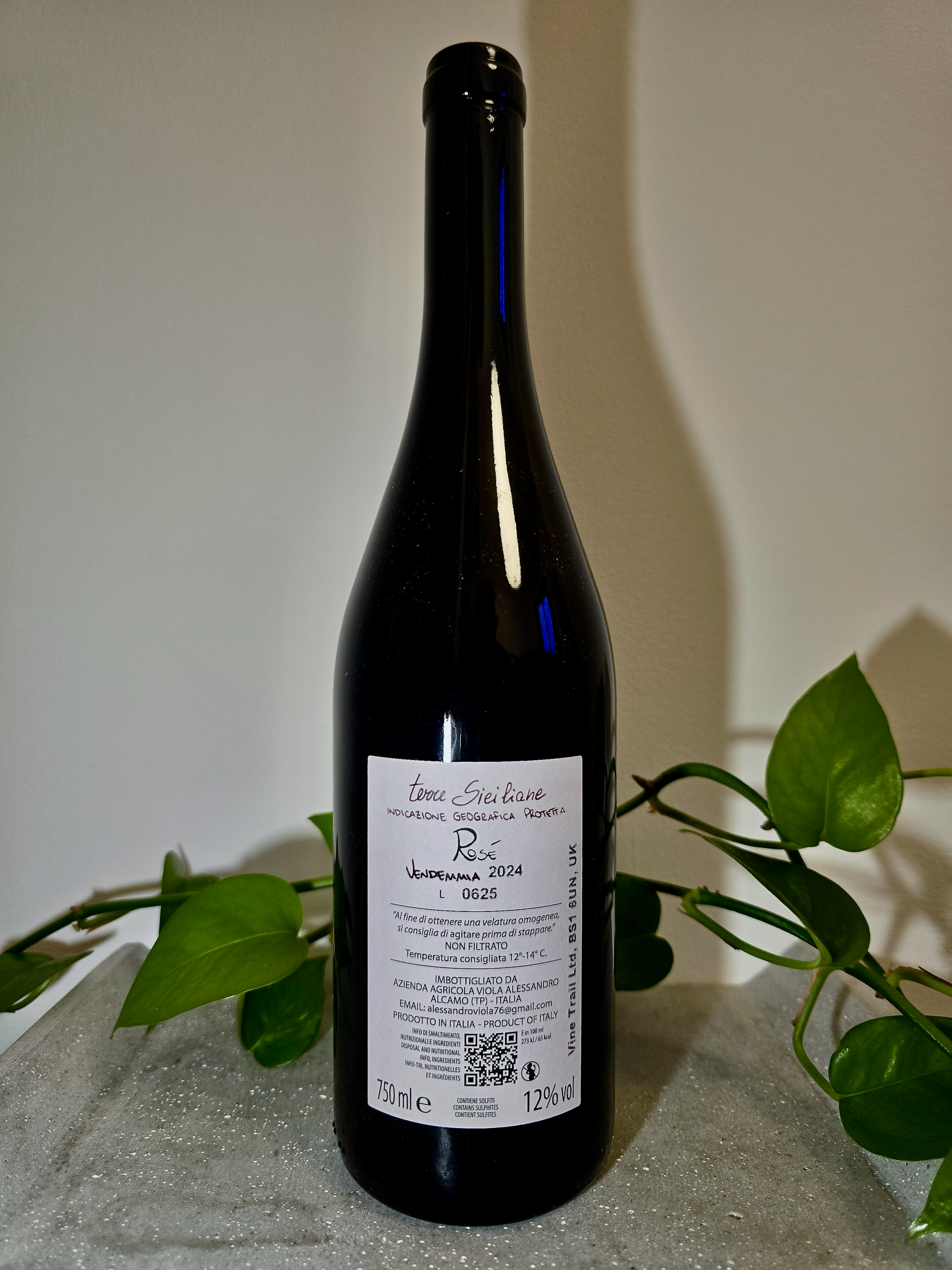 Crafted from 90% Nero d’Avola and a touch of Nerello Mascalese, this rosé is a vibrant expression of Alessandro Viola’s organic vineyards in the Trapani region of Sicily. The Nero d’Avola is sourced from the valley near Santa Ninfa, while the Nerello comes from Alcamo, both picked early to preserve their natural zip. To maintain maximum freshness, the grapes are directly pressed and fermented with indigenous yeasts in stainless steel tanks. Following Alessandro’s non-interventionist philosophy, the wine is bottled unfiltered and unfined with minimal added sulphur, resulting in a pure, high-energy wine that is the definition of "smashable."