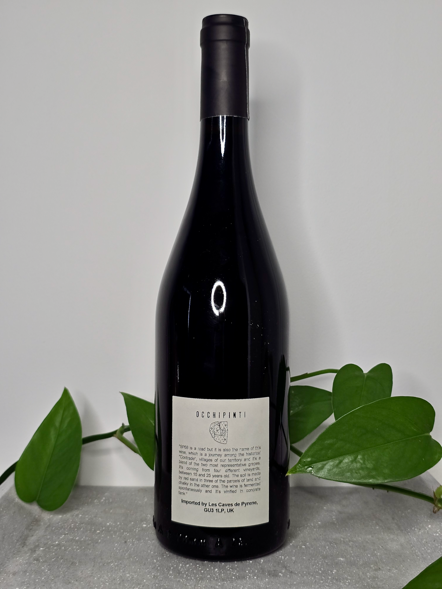 Named after the main road that runs past Arianna's vineyards in Vittoria, SP68 Rosso is everything you want from a modern Sicilian red - fresh, vibrant, and utterly delicious. This blend of 70% Frappato and 30% Nero d'Avola shows off Arianna's magic touch (learned under the watchful eye of her uncle Giusto at COS), creating something much more lifted and bright than your typical Nero d'Avola. The ruby-red wine practically bursts with wild cherries, plums, and mulberries, with that lovely raspberry lift that keeps things lively. But it's the smoky, saline character and those wild Mediterranean herbs that transport you to Sicily - you can almost taste the sun-baked earth and sea breeze. Made biodynamically with wild yeasts and aged in concrete for 8 months, it has a wonderful freshness that means you could serve it slightly chilled on a warm day, yet there's enough savoury complexity and gentle tannins to handle heartier fare too. It's unfined, unfiltered, and completely authentic - basically liquid sunshine from one of Sicily's most exciting young winemakers who's proving that tradition and innovation make the perfect blend.