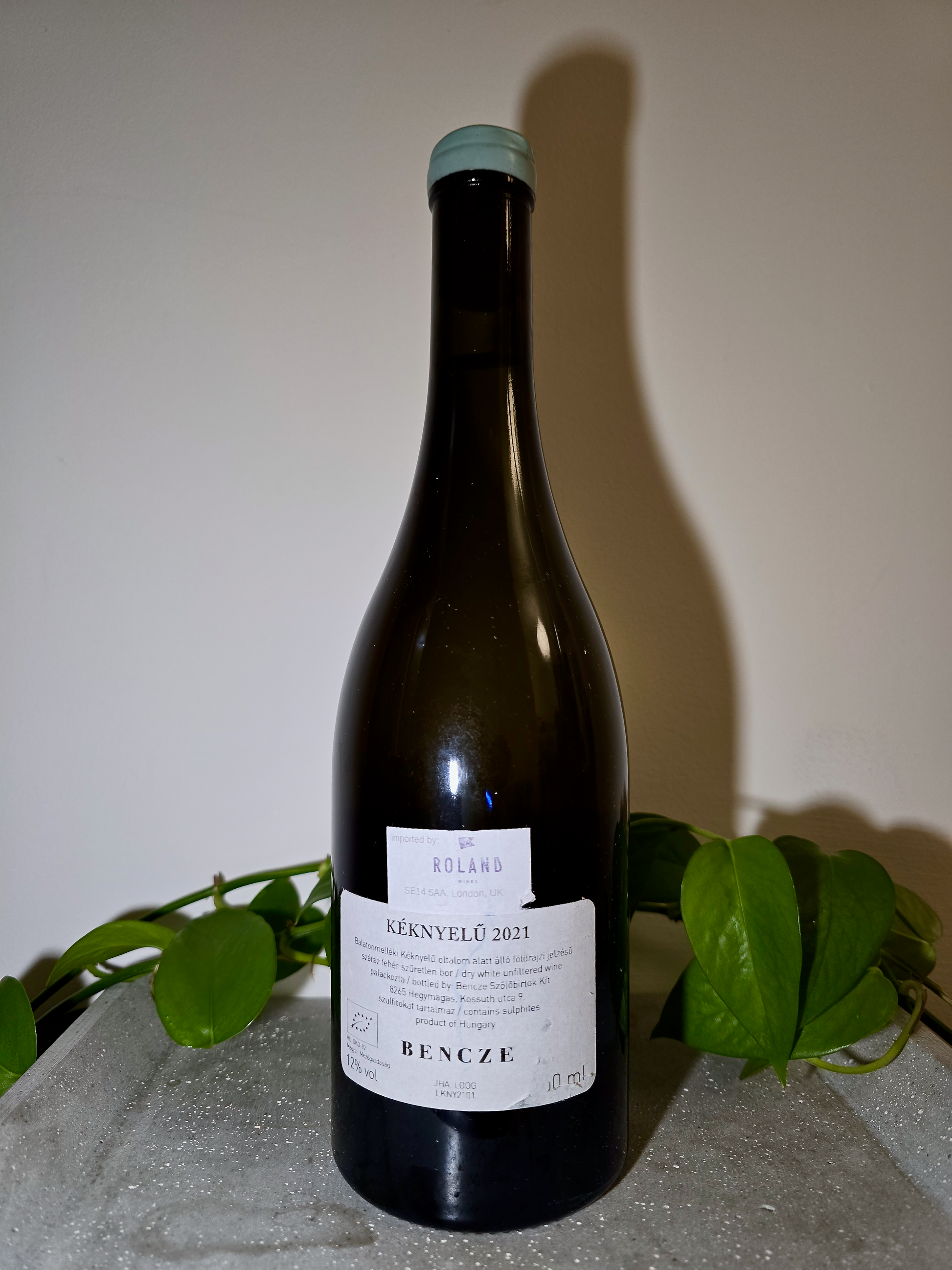 Kéknyelű is a local grape variety found only around the Badacsony region of Lake Balaton - rare, demanding lots of work in the field, but the reward is massive. This is a powerhouse in a bottle, like a hulking force trapped in tiny form. From 5-year-old vines on dense volcanic basalt at 180m, István harvested in multiple steps at the end of September to catch perfect ripeness. After slow, gentle whole-bunch pressing, the grapes went into clay amphoras where they fermented and aged for 10 months. This wine is the blend of the three most powerful and electric amphoras, bottled mid-July, unfined, unfiltered, without SO₂. The nose bursts with freshly cut daisies paired with lively lemon sherbet and ripe white peach – zesty and aromatic, both delicate and bold. The amphora ageing delivers incredible tension on the palate, balancing bright acidity with a flinty mineral backbone that echoes the volcanic terroir. Full-bodied with remarkable longevity, lots of exotic fruit and wonderful structure. Just 1500 bottles of power, finesse, and serious potential that lingers long after the last sip.