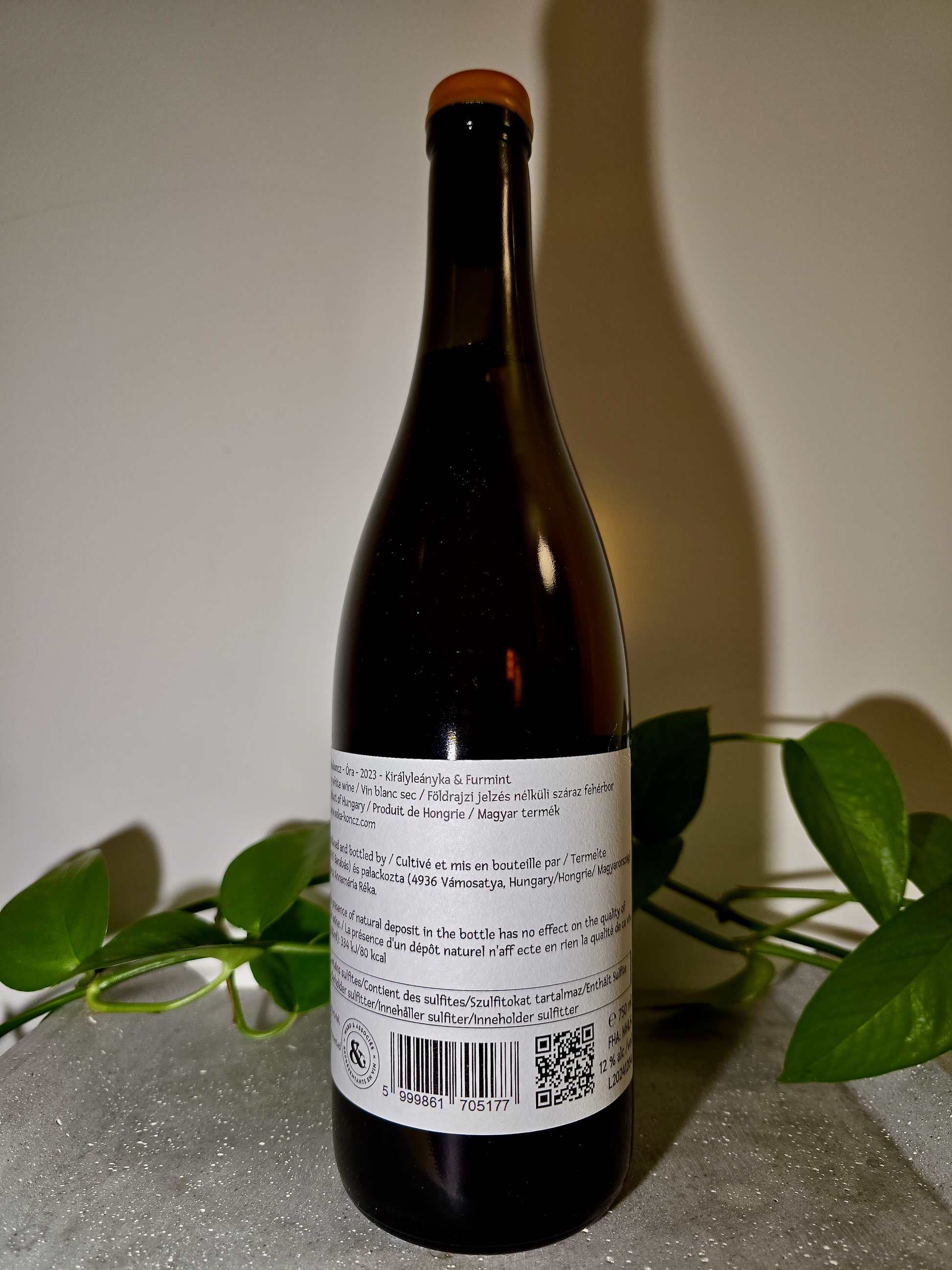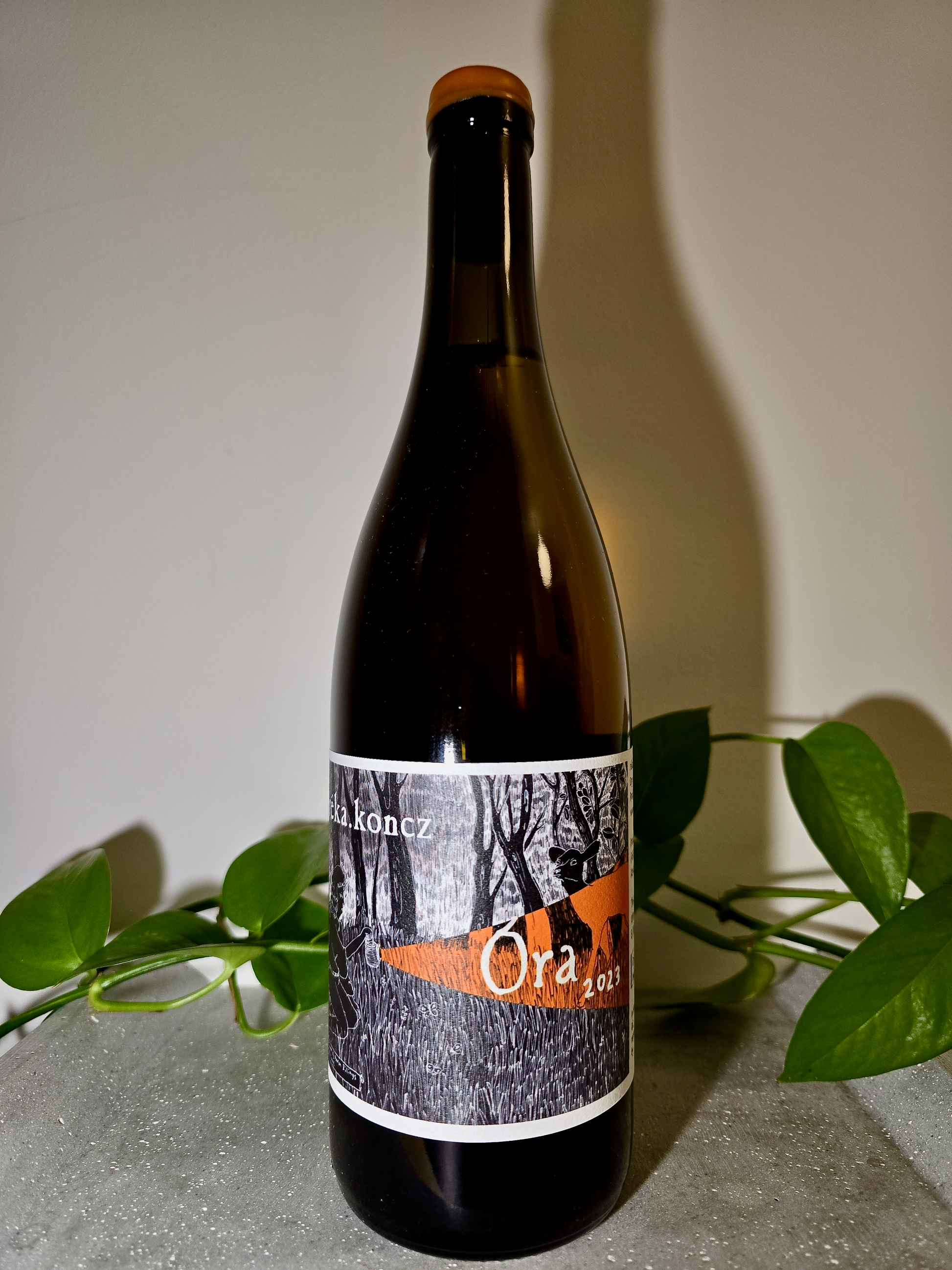 Ora is a deeply structured blend that's rustic in the best possible way, showcasing the diversity of Hungary's volcanic terroirs. 30% comes from Annamária's own 50-55 year old vines of Királyleányka, Rhein Riesling, and Hárslevelű that she and her parents have revived in Barabás, whilst 70% is Furmint from a certified organic grower in the Tokaj village of Mád. All the fruit grows in volcanic soils – rhyolite, andesite, dacite, and volcanic tuff, rocks that were once literally liquid fire. The Furmint was destemmed and spent two weeks on the skins with basket pressing and punch downs, whilst her own fruit was picked together as a field blend and co-fermented in egg-shaped fermenters – a mixture of whole cluster and destemmed, spending 4-5 days on skins before basket pressing to finish in fibreglass. The two parts were blended in August 2022. What emerges is full of life – ripe apples, damp earth, smoky tar, and mint opening up to hibiscus, orange blossom, apricot, and floral honey. The acidity plays its own note, quietly at first, then building, with yuzu, lime, chilli, sandalwood, and black tea providing depth and resonance. This is a bottled melancholic masterpiece – sensual, uncompromising, and so alive.